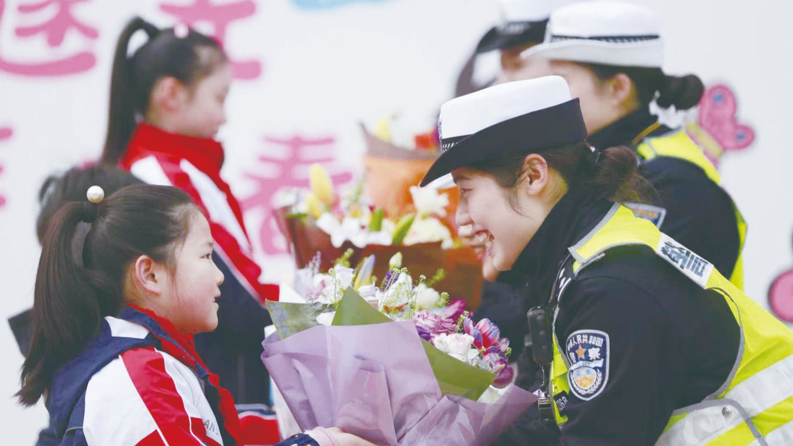 3月5日,三八妇女节来临之际,芜湖市公安局交管支队弋江大队女子护学岗民警辅警,一如既往坚守在安徽师范大学附属小学(西校区)门前,疏导交通、守护师生安全。当日8时许,学生们在学校组...