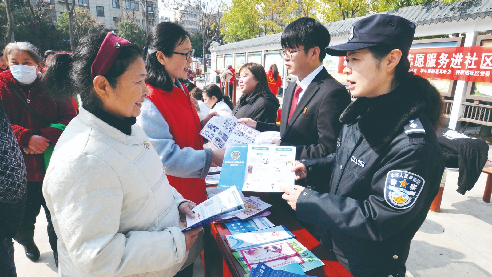 春节期间,芜湖市公安局湾沚分局六郎派出所启动“新年反诈进集市”宣传活动,将实用的反诈知识送到群众身边。(黄莺占英摄)