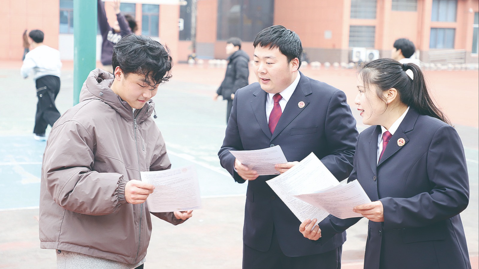 3月18日,阜阳市颍州区人民检察院未检团队干警们走进学生中间开展普法宣传,向学生们发放宣传手册。当天,该院党组书记、检察长王茹以法治副校长身份带领“州舟护航”未检团队走进阜阳科学...