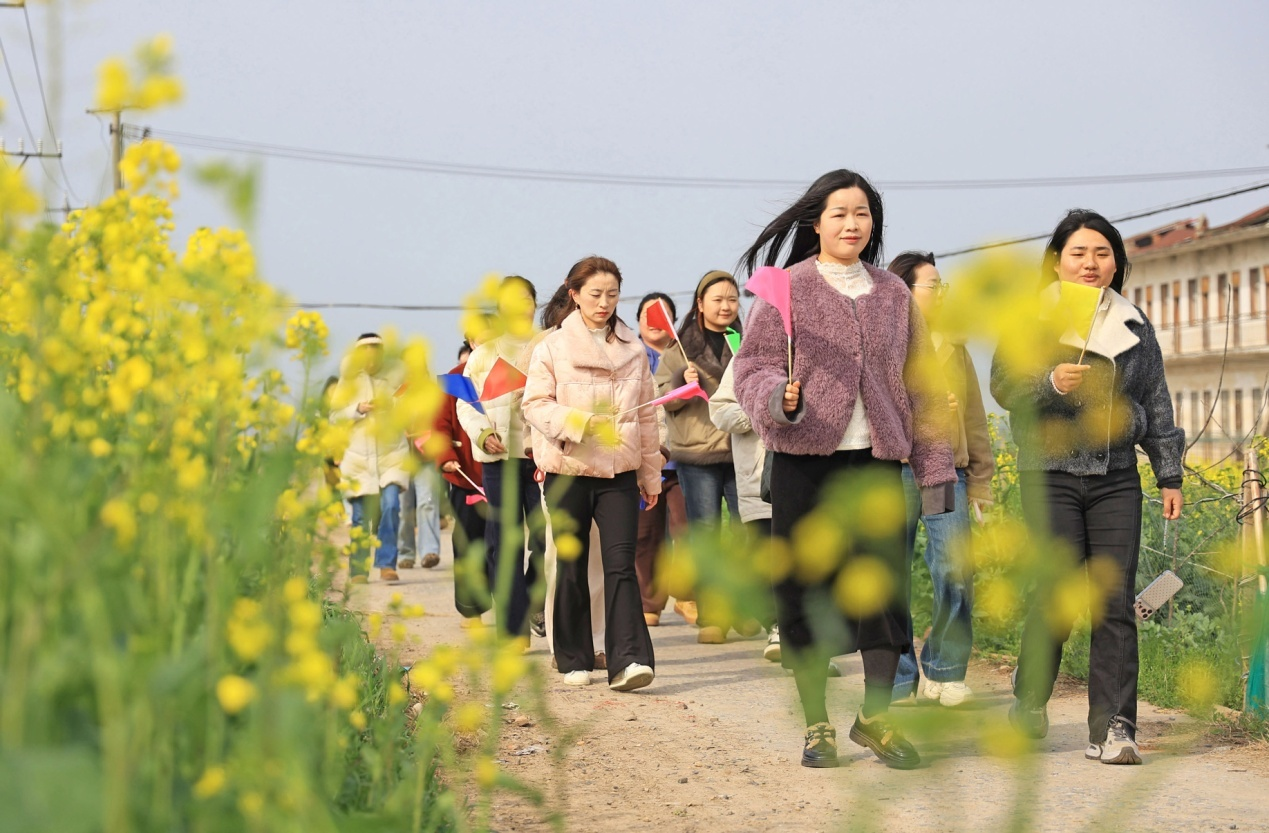3月6日,省属农垦华阳河农场开展女职工新春健步走活动,喜迎“三八”国际妇女节。女职工手持彩旗,沿着步道结伴而行,在春日里舒展身心、笑语同行,展现昂扬向上的巾帼风采。(李龙)
