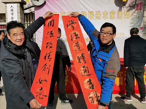法治安徽网讯 为深入开展法治宣传教育、弘扬社会主义法治精神、营造吉祥如意的春节氛围,金安区先生店乡一亩田家庭农场负责人宋立峰,在区