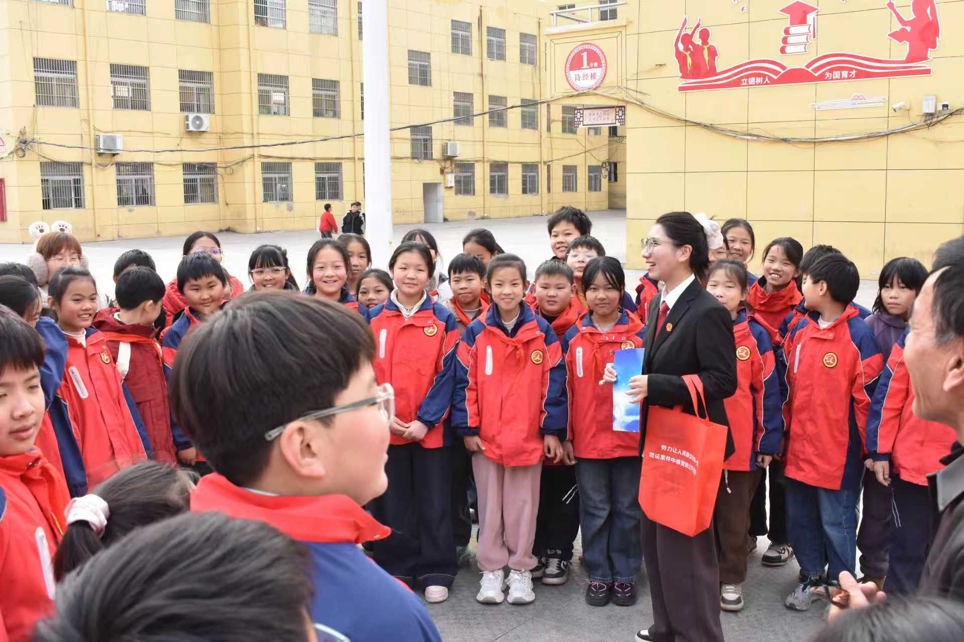 12月4日,灵璧县法院干警走进尤集中心小学,开展“法润少年护航成长”主题宪法宣传教育活动,为700名师生带来一堂生动深刻的法治教育课,用法治守护青少年健康成长的蓝天。图为法院干警向 ...