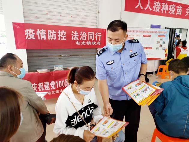 法治安徽网讯 为切实做好当前新冠肺炎疫情防控工作,加大对《传染病防治法》等法律法规的宣传教育,营造依法科学有序防控疫情的良好氛围。近日,黄山市司法局屯光司法所联合镇相关部门在社屋前社区新冠肺炎疫苗接种点开展“防控疫情、法治同行”法治宣传活动。
