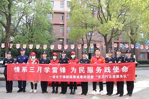为积极学习和弘扬雷锋精神,深入推进禁毒戒毒宣传教育工作,安徽省女子强制隔离戒毒所团委积极开展学雷锋禁毒宣传志愿服务活动,以实际行动践行雷锋精神。3月4日下午,安徽省女子戒毒所“木兰行”志愿服务队队员在蜀山区五里墩街道团安村社区文明社区青年志愿者服务大集上“摆摊设点”,发挥自身专长,热情为居民们开展禁毒戒毒宣传教育,提供法律咨询便民服务。
