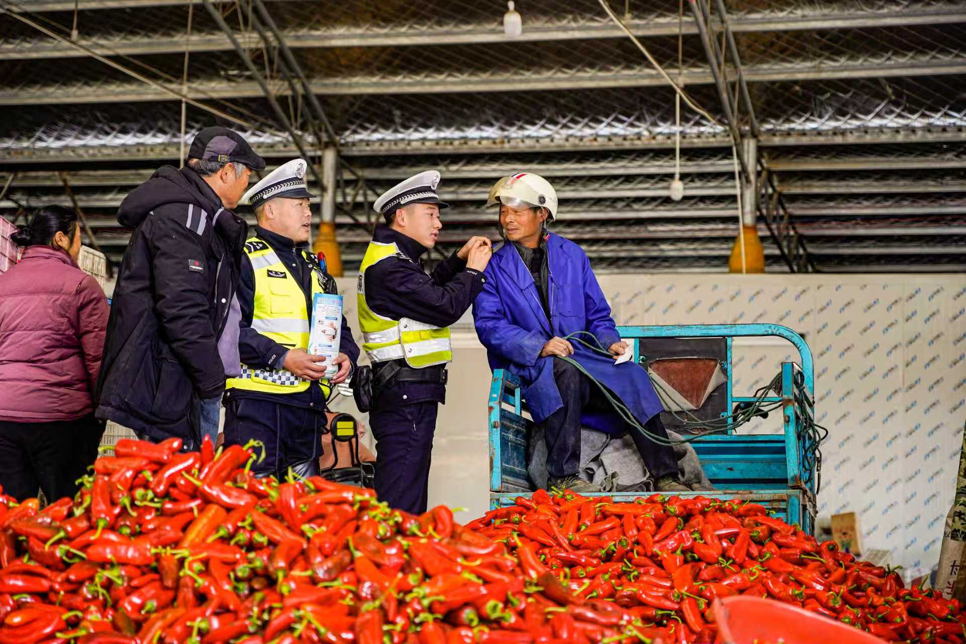 眼下正值和县12万亩红辣椒丰收采收、集中运输的关键时节。为护航农户运输路通行安全,12月9日,和县公安局交管大队深入辖区红辣椒交易市场,把安全知识送到农户身边,筑牢辣椒运输交通安全防线。