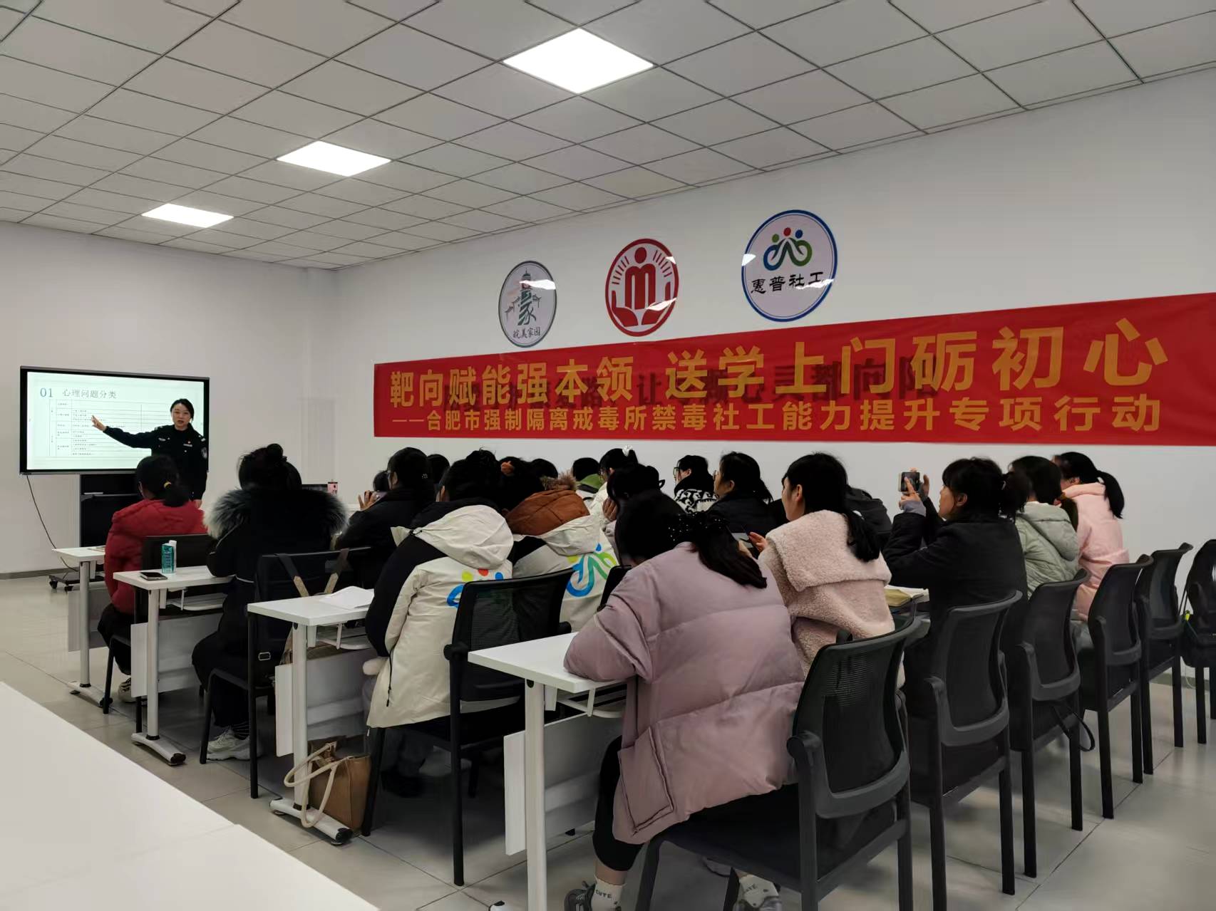 近日,合肥市强制隔离戒毒所以“靶向赋能强本领 送学上门砺初心”为主题,开展禁毒社工能力提升专项行动,为来自合肥市蜀山、庐阳、高新、包河、肥东、肥西、长丰等七县区的一线禁毒社工,送上精准化、实用性强的“充电套餐”,切实强化社区戒毒社区康复工作专业支撑。