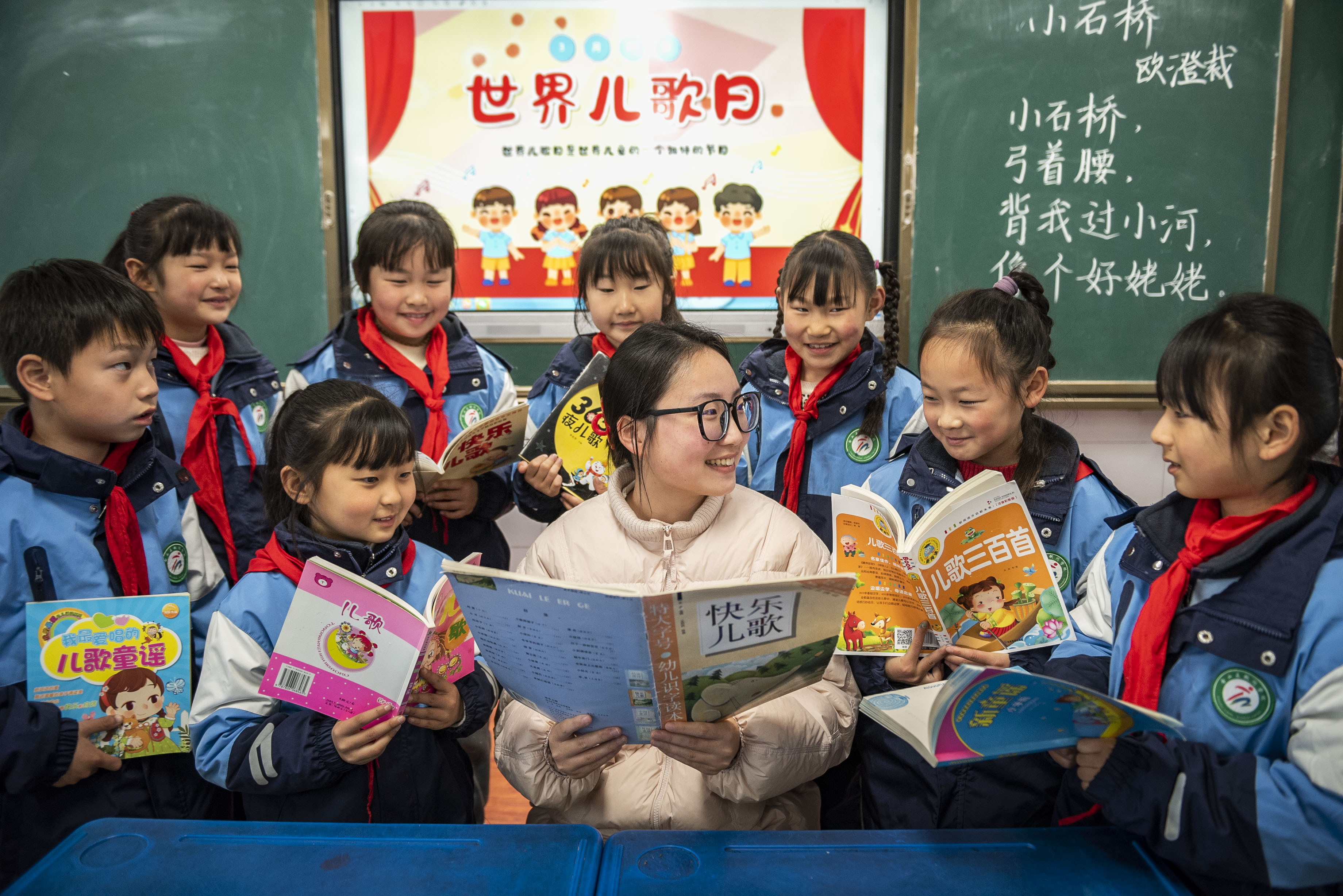 2026年3月17日,含山县铜闸学校开展“儿歌伴行 快乐成长”主题教育活动,小学生在老师的带领下唱儿歌、做游戏、读绘本,在欢快旋律与趣味互动中感受童谣魅力,用纯真笑脸迎接3月21日“世界儿歌日”的到来。