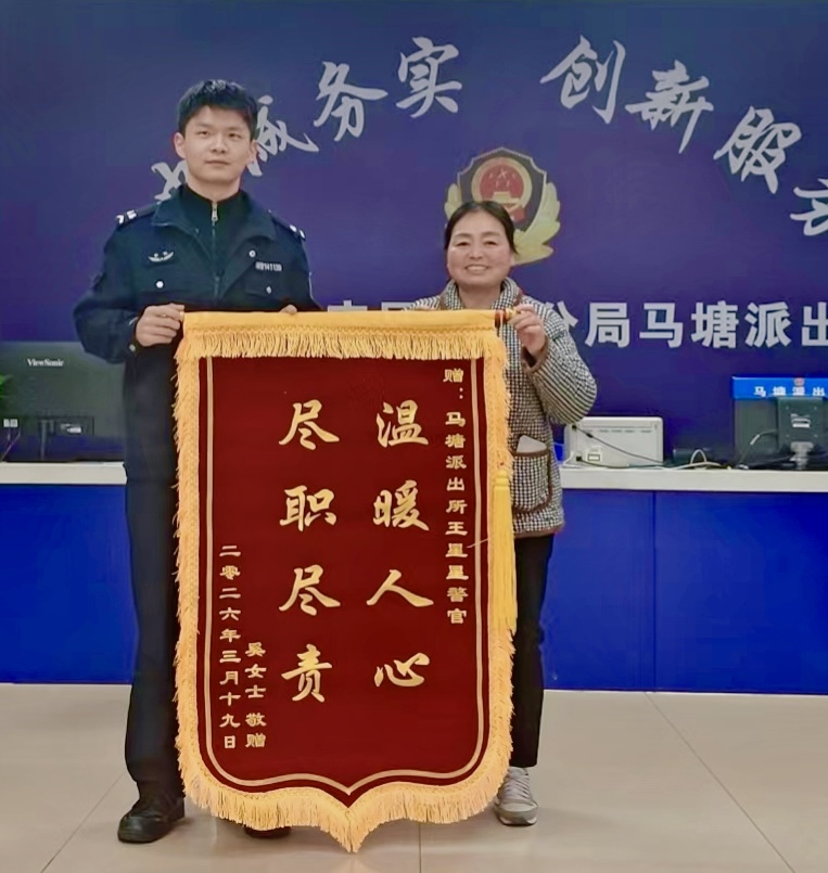 3月19日,芜湖市公安局弋江分局马塘派出所,收到辖区居民何女士送来的一面印有“温暖人心 尽职尽责”的锦旗,对民警高效调处房屋财物纠纷、切实为民排忧解难表示感谢。