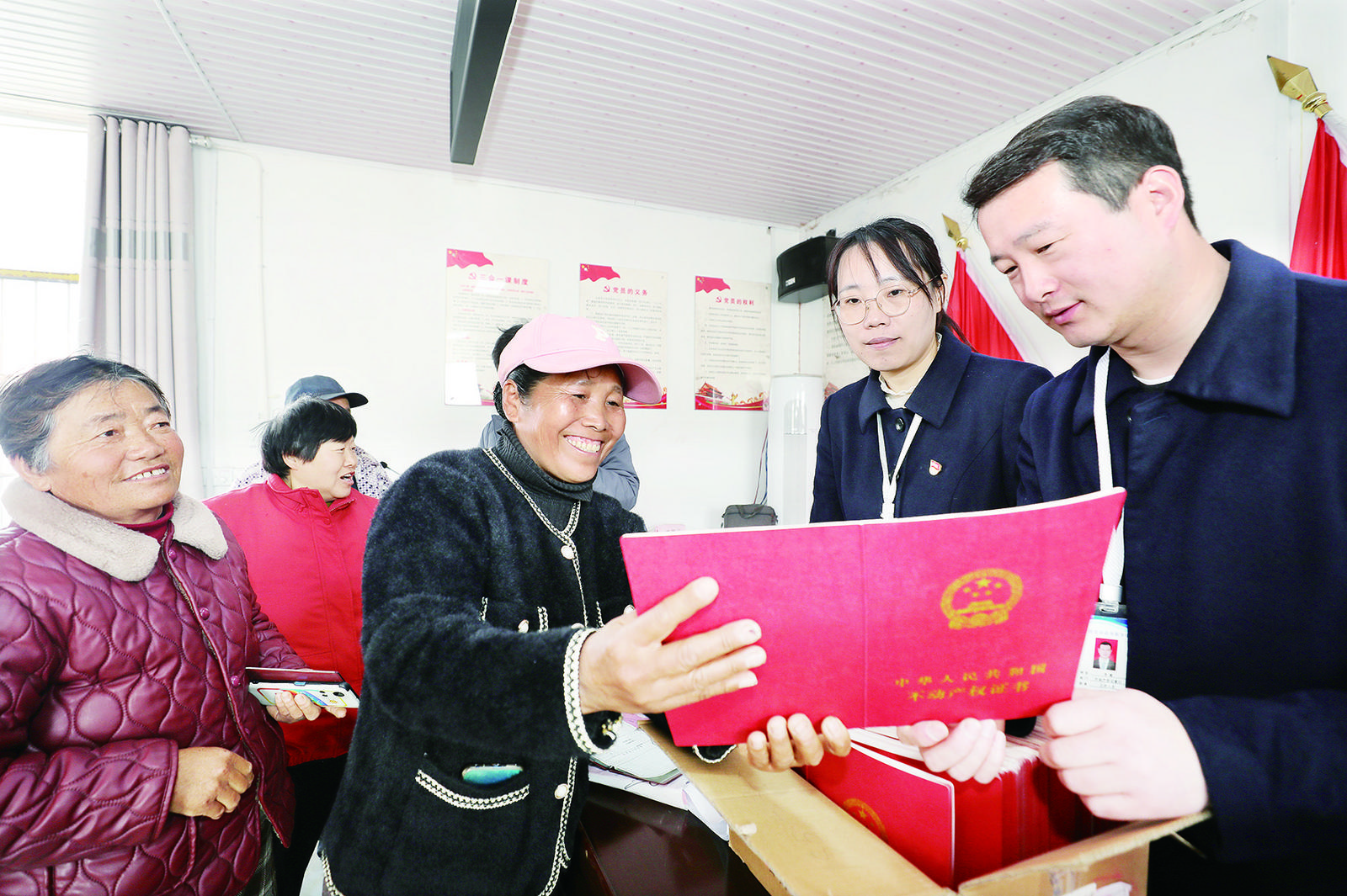 当日,淮北市自然资源和规划局不动产登记部门进一步优化服务举措,在农村宅基地“房地一体”确权登记颁证工作中,组织党员和志愿服务人员,为偏远乡村开展集中“送证上门”服务活动,缩短与村民和服务对象的办证距离,加快推进农村宅基地“房地一体”确权登记颁证工作,让群众在家门口就能领到产权证书“红本本”。(通讯员 李鑫 摄)